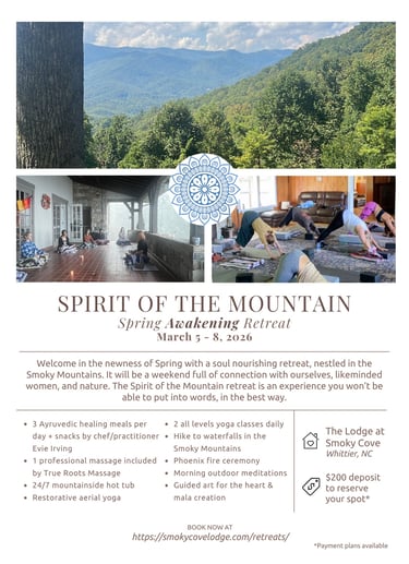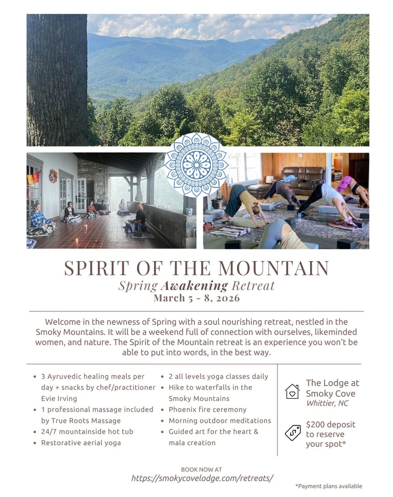 Secure your spot at our next retreat at the Lodge at Smoky Cove in the healing mountains of North Carolina!